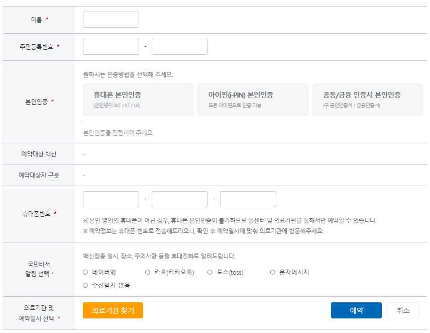 사전예약 사이트에서는 자녀가 본인의 인적 정보를 입력하고, 대리인 여부를 인증받은 뒤 대신 예약을 진행할 수 있습니다.